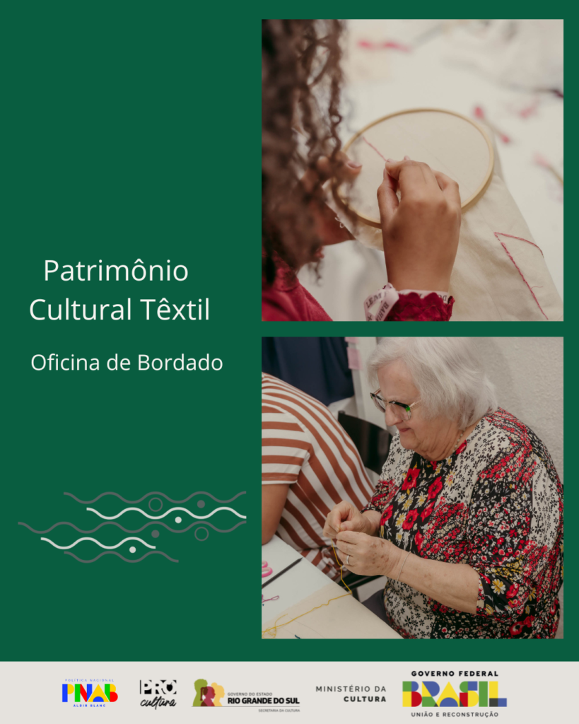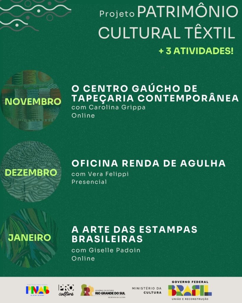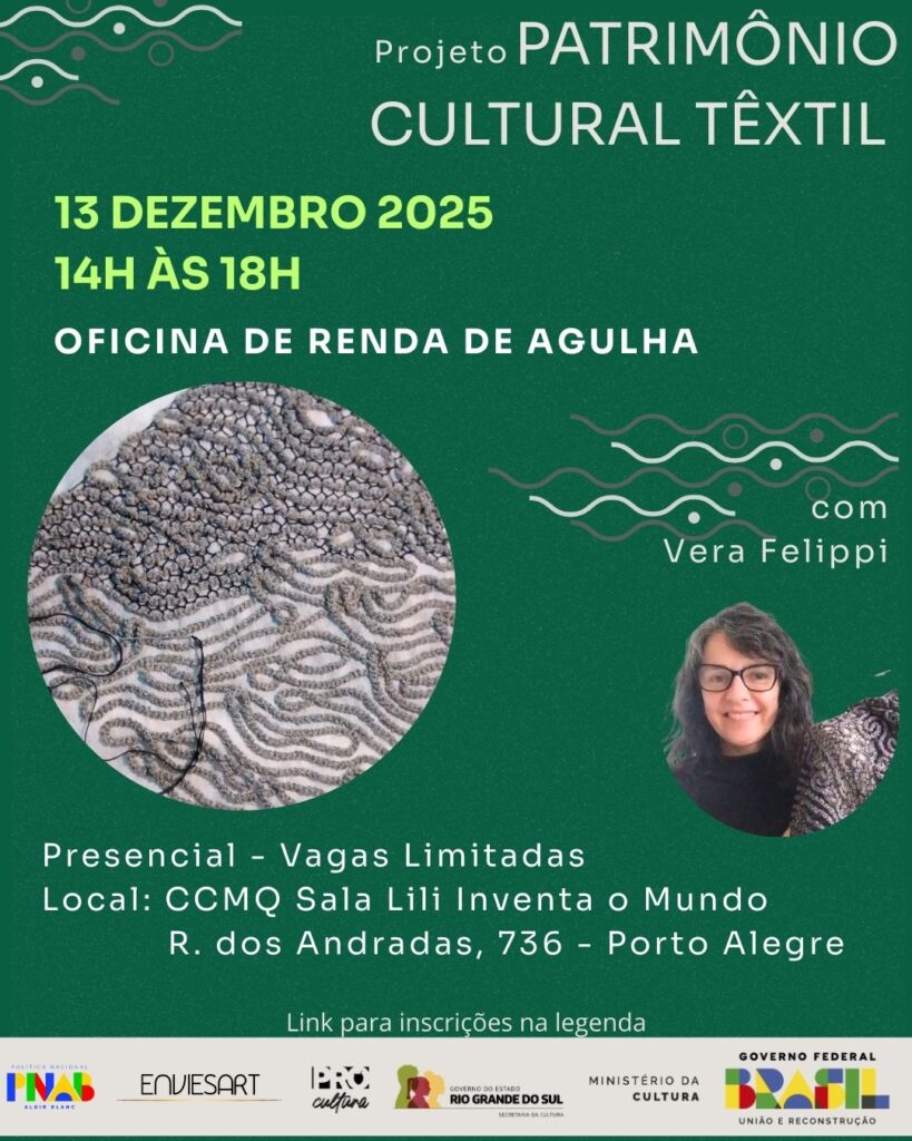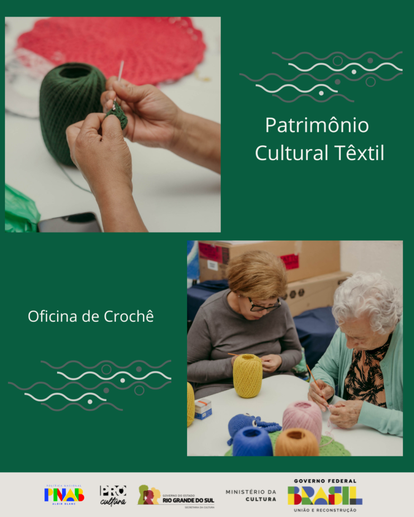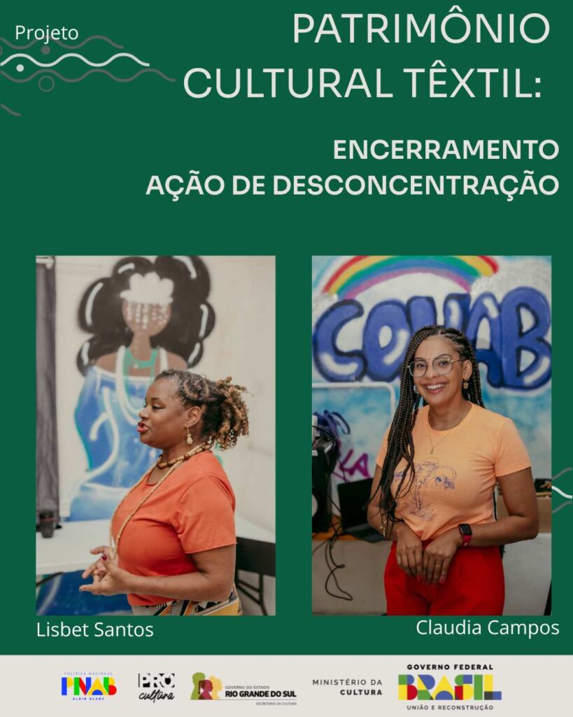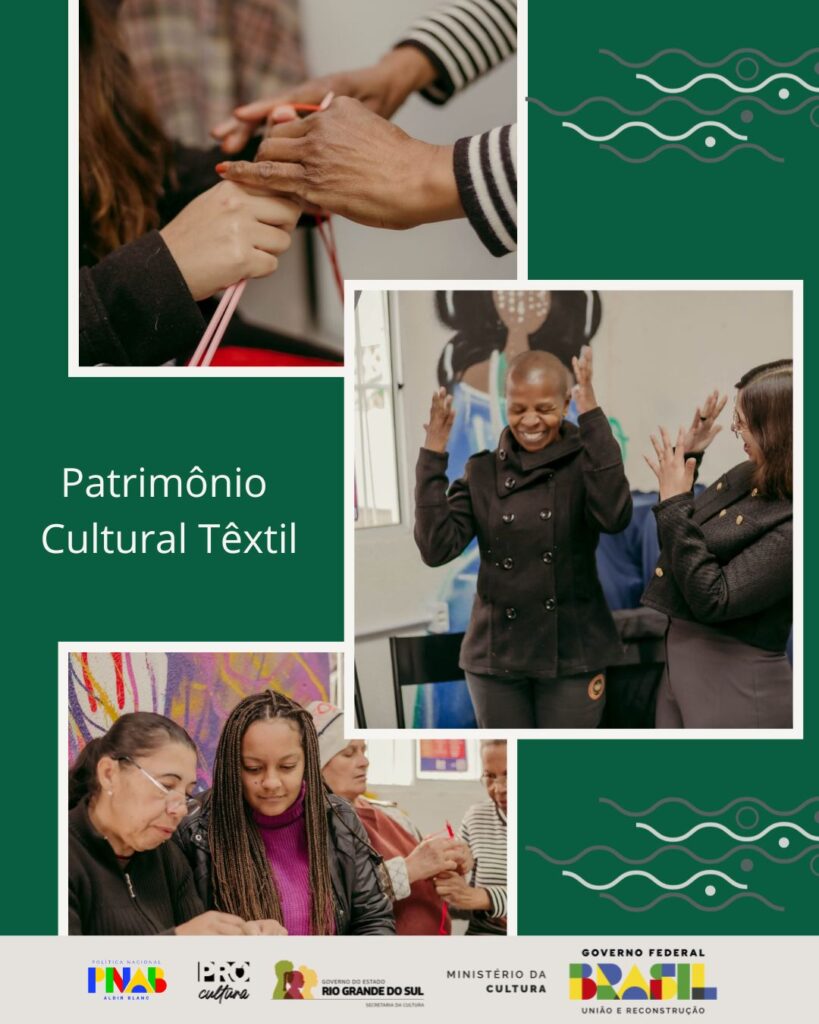 O Projeto Patrimônio Cultural Têxtil contou com “ação de desconcentração” com atividades especiais no Bairro Rubem Berta, em Porto Alegre. Foram ofertadas oficinas práticas e palestras inspiradoras em parceria com o Espaço Cultural Marlon e Marcelinho (@marlonemarcelinho) 🧶As atividades compreenderam: